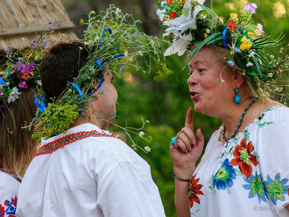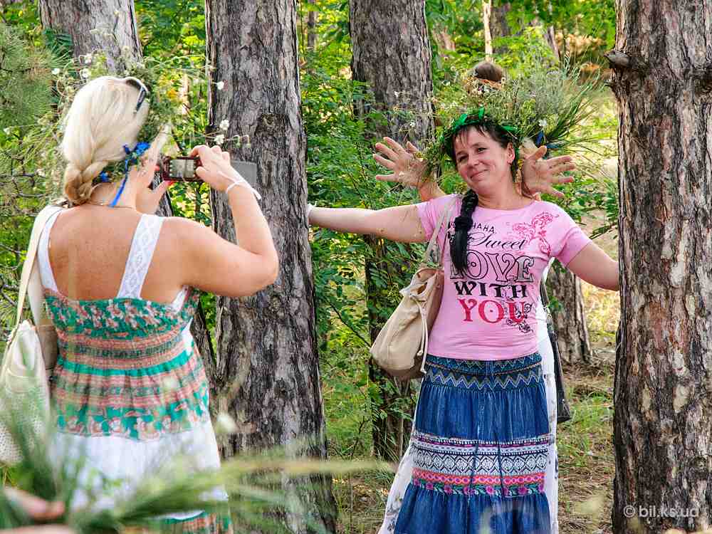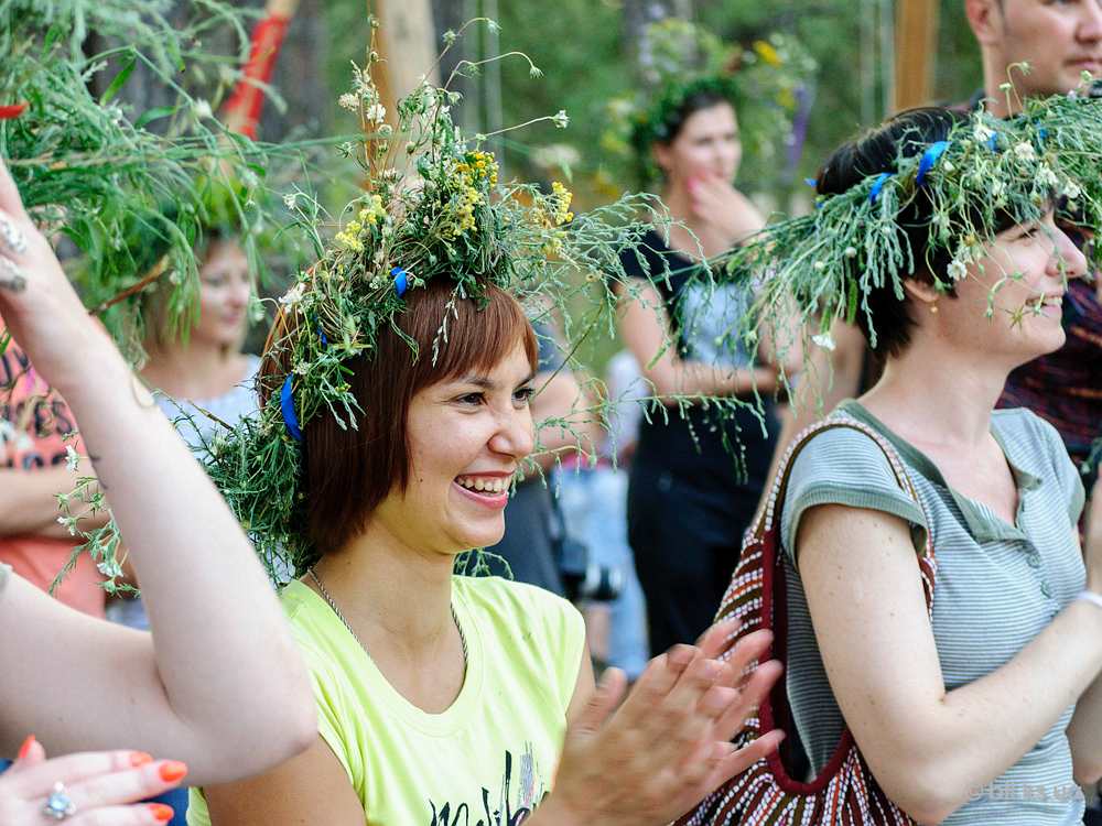 Почти полчаса дороги — и после городской жары прохлада хвойного леса взбодрила. Хо-ро-шо! Одним достаточно было свежим воздухом подышать, поесть-попить на природе и со стороны посмотреть на происходящее, другие же активно включались в процесс: перепрыгивали через небольшой костерок, завязывали ленты на ветвях деревьев — для исполнения желаний, плели купальские венки, а кто посмелее — углубился в лес (не иначе как цвет папоротника искать). В обрядах и играх тоже не стеснялись участвовать. А концерт в один прекрасный момент просто превратился в веселую дискотеку — зрители, попав в это удивительное место, перестали быть зрителями, и стали частью действа, поэтому они и от души подпевали артистам, и танцевали прямо перед сценой.
