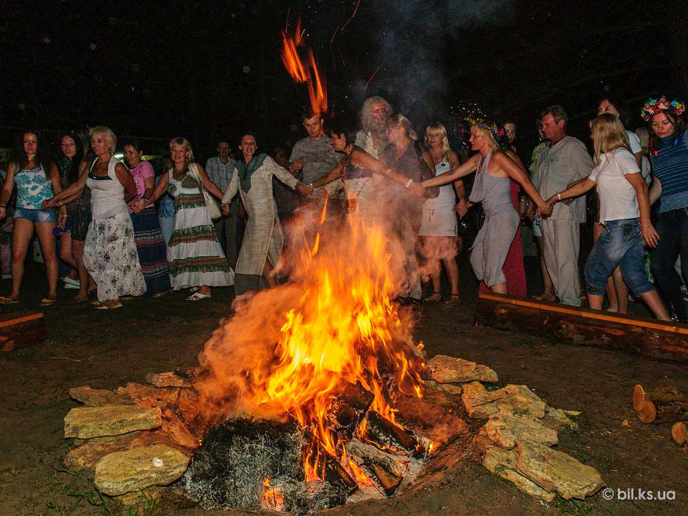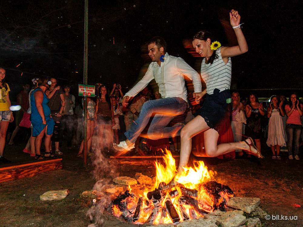 И уже глубокой ночью, после сожжения Купалы, прошло очищение огнем: кто только не прыгал через большой купальский костер! Не только молодежь взлетала над пламенем, но и господа и дамы солидного возраста, явно сбросившие в этот вечер не один десяток лет.