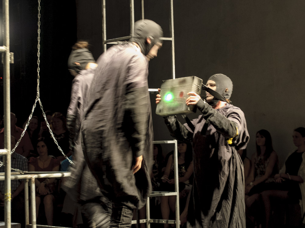 Костюмы и декорации лаконичны, пластика близка к брейк-дансу, ритуальные приветствия напоминают «Кин-дза-дза» - все это называют «киберпанк». В общем, поэкспериментровали.