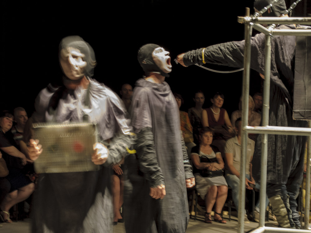 Драматург - херсонец Женя Марковский, художники - Наталья и Сергей Рыдванецкие (декорации и костюмы к «Страшной мести» - их рук дело), театр, который в свое время потряс (это была «Женитьба» Жолдака) — в общем, пропустить “Сканинг” Черкасского театра им. Шевченко не хотелось.