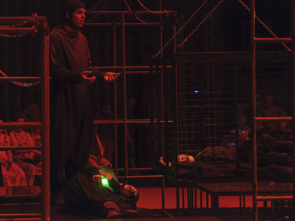 Еще летом 1913 года Евгений Марковский стал одним из 7 молодых украинских драматургов, которых пригласили в черкасский театр на творческий мозговой штурм в рамках режиссерско-драматургической лаборатории. А через год Жене предложили написать пьесу о черкасских “титушках”. Но в сентябре прошлого года, когда и началась работа, тема свою актуальность утратила. Получилась антиутопия: лживое тоталитарное общество, люди с промытыми мозгами, постоянный контроль на благонадежность (сканинг), и даже свой «большой брат» имеется. Малейшее подозрение — и из благонадежного ты превращаешься во врага. Перенести написанное на сцену взялась молодой режиссер из Харькова Алена Снигурченко.