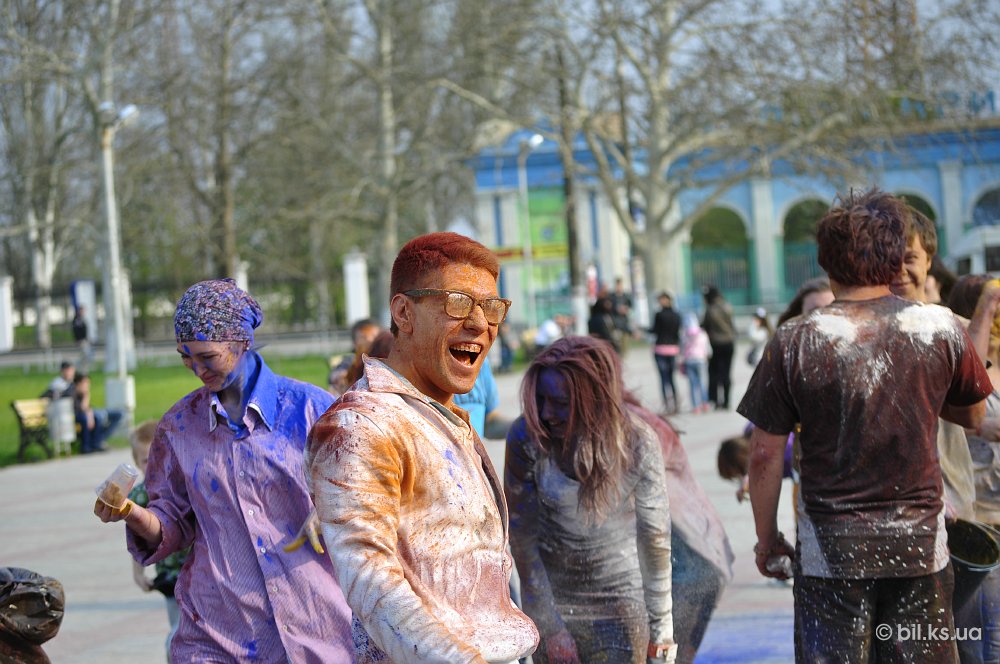 Итак, весну в Херсоне встречали ярко и весело, как во время одного из самых колоритных индуистских праздников — Холи, когда люди обливают друг друга подкрашенной водой и обсыпают цветными порошками, желая радостной беззаботной жизни. Сухая краска стала главным «оружием» и для херсонской молодежи, которая перед «Юбилейным» устроила свою весеннюю «цветную битву». Изрядную порцию удовольствия и драйва от этого действа получили все.
